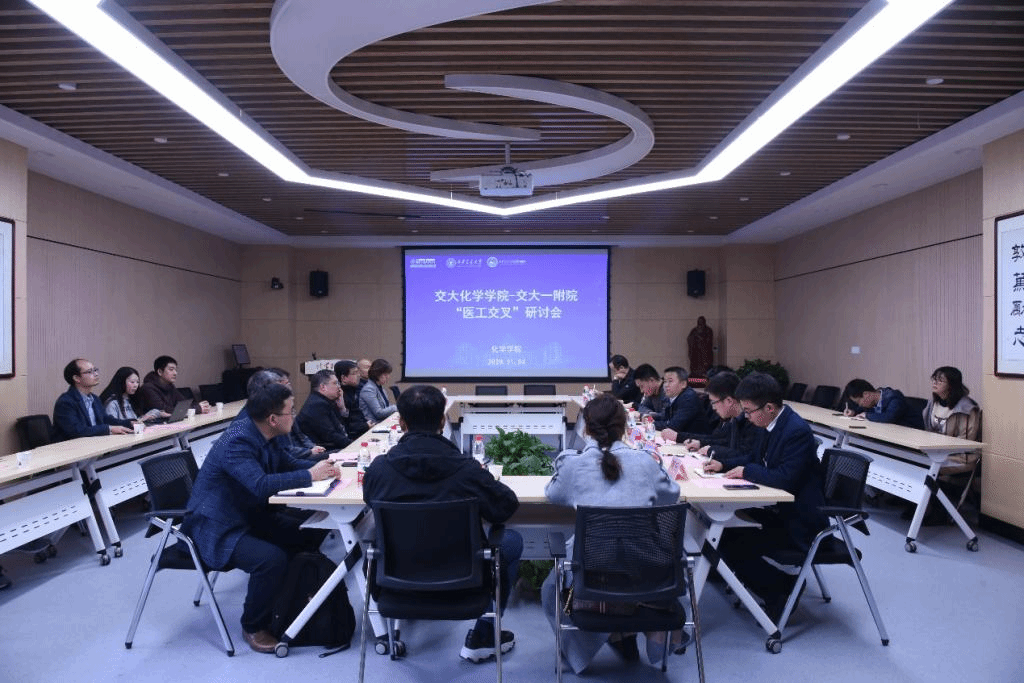 11月4日下午,交大一附院党委书记马辛格、副院长袁祖贻、组织统战部部长高琰、院长助理佘军军一行访问化学学院。学院党委书记张志成、副院长张彦峰、院长助理党东锋及多名青年教师代表出席研讨会。与会双方以“医工交叉”科学研究为主题开展交流座谈。会议由副院长张彦峰主持。