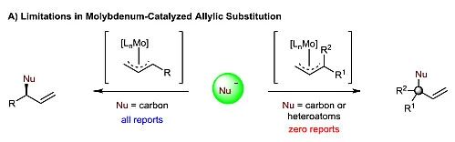 考虑到这些局限性,西安交通大学理学院Ajmal Khan团队提出了探索可提供含有杂原子的三元烯丙基立体中心产物的新型钼催化烯丙基取代反应(图1右),且首次报道了钼催化的叔烯丙基亲电试剂的烯丙基磺酰化反应。该团队在未知的情况下进行了大量探索,最终得到预期结果的最佳反应方法(图2)。