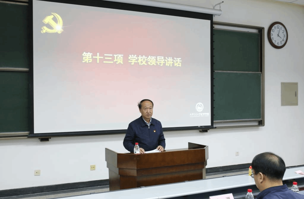 学院院长丁书江同志围绕教学、科研、学科建设等重点内容介绍了学院的重点任务,全方位,多层次的论述学院的远景目标。他着重强调,在新的发展起点上,展望未来、不忘初心、牢记使命,以逢山开路、遇水架桥的开拓精神,筚路蓝缕,扬帆起航,坚信我们大家为化学学科开创新局、一往无前、奋斗拼搏的足迹,终将刻印在学科发展的历程中。