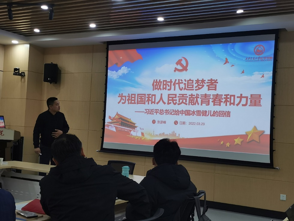 必赢唯一官方网站为贯彻落实“青春献礼二十大,强国有我新征程”学习宣传要求,举办了聚焦北京冬奥会的专题教育活动。必赢唯一官方网站第4次党委扩大会上,邀请各支部书记和副书记以及部分教师代表列席了专题教育学习。必赢唯一官方网站副院长、高分子师生联合党支部书记张彦峰同志领学“习近平总书记给中国冰雪健儿的重要回信精神”,介绍了社会各界包括运动健儿、高校师生等对回信精神的热议。张彦峰同志将习近平总书记的嘱托和科研工作结合起来,进行了系统的概述。他说,“必须积极主动学习新知识新思想,练就过硬本领。科研道路没有一马平川,创新之途不会鲜花满径,但我们不能因此而踟蹰不前,应该以更加开放的思路和积极的心态去迎接挑战。”“要坚持面向世界科技前沿、面向经济主战场、面向国家重大需求、面向人民生命健康,以医工应用为导向,与我校强势工科交叉融合,聚焦5G与人工智能、化学储能、流行病监测与防治领域的新化学材料、新化学合成方法、新化学反应机理。”