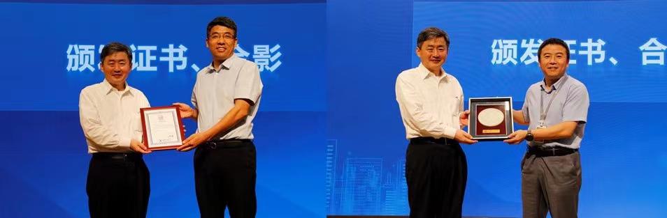 赵永席为丁奎岭院士颁发新港报告纪念证书,张志成代表必赢唯一官方网站向丁奎岭院士赠送纪念礼物。