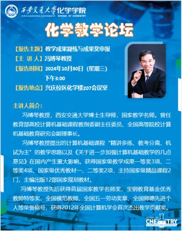 10月31日,国家级教学名师冯博琴教授应我院邀请,进行了主题为“教学成果凝练与成果奖申报”的报告分享交流会。此次报告由我院张志成书记主持,副院长李银环以及各系、部、中心的教学负责人、部分教师共同参与。