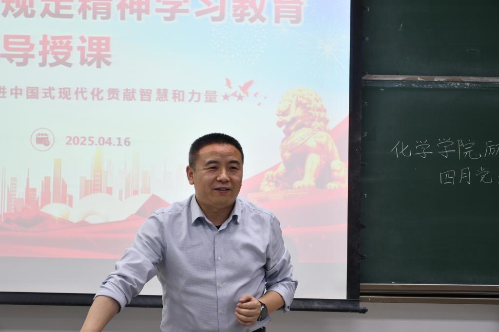 必赢唯一官方网站党委书记张志成教授以《新时代作风建设的历史逻辑与实践路径》为题讲授党课。他立足国际国内形势变化,从“逆全球化背景下单边主义抬头”“全球产业链深度调整”等宏观视角切入,系统回顾了党的十八大以来全面从严治党取得的标志性成果。结合《中国共产党纪律处分条例》具体条款,张志成以“三河市行政执法不规范”等典型案例为切入点,深入剖析形式主义、官僚主义的滋生根源与治理路径。他特别强调,化学学科师生需立足科研实际,将中央八项规定精神融入实验室安全管理、科研经费使用等日常场景,以严明纪律护航科技创新,为推进中国式现代化贡献专业力量。