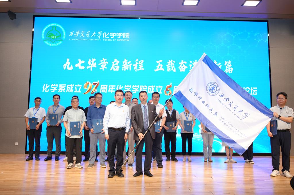会上,化学行业校友会秘书长杨鸿辉教授向大会报告校友会筹备成立情况。校友关系发展部赵力副主任宣读《关于同意成立西安交通大学化学行业校友会的批复》,许佳辉主任为校友会授会旗。化学行业校友会将肩负起“搭建校友联络平台、促进产教融合发展”的重任,为全球交大化学人搭建"校友联络-资源整合-产教融合"平台,凝聚力量、共谋发展,提升交大化学人的学术与产业影响力。