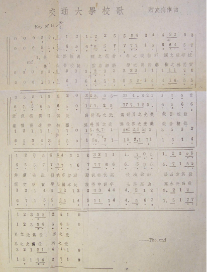图. 交通大学校歌《为世界之光》