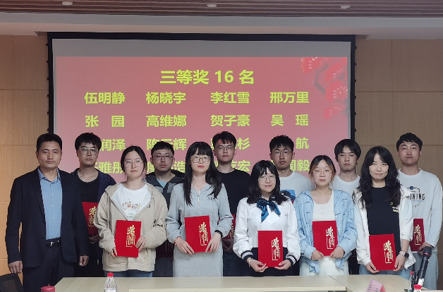 课题组奖学金部分,熊杰同学蝉联特等奖学金,程益品等13名同学荣获一等奖学金,邵睿等15名同学荣获二等奖学金,伍明静等16名同学荣获三等奖学金。与会嘉宾薛周利、毛珊、丁书江、张彦峰老师分别为获奖学生颁发证书。